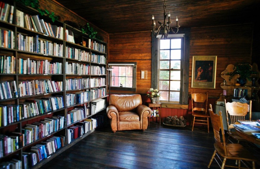 Simplicity reigns here. Small, rustic room, worn, comfortable chair tucked away into a corner, rich wood hues warming the space…and a healthy row of reading material stacked up against the wall, with just enough sunlight spilling in to illuminate it all. This, friends, is a book lover’s room.