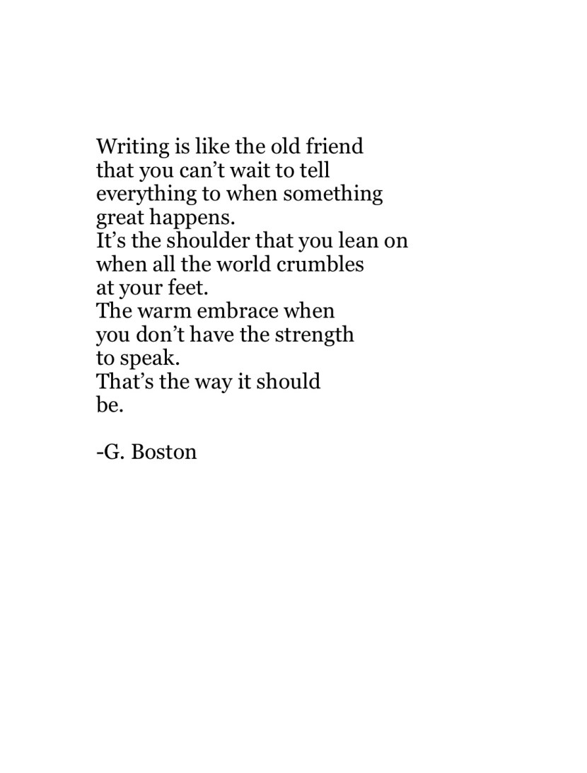 I know the feeling! There are so many therapeutic benefits to putting thoughts to paper. I hope that more people discover the release that it gives…you don’t have to be a ‘writer’ or ‘poet’ to write. I hope you’re well!