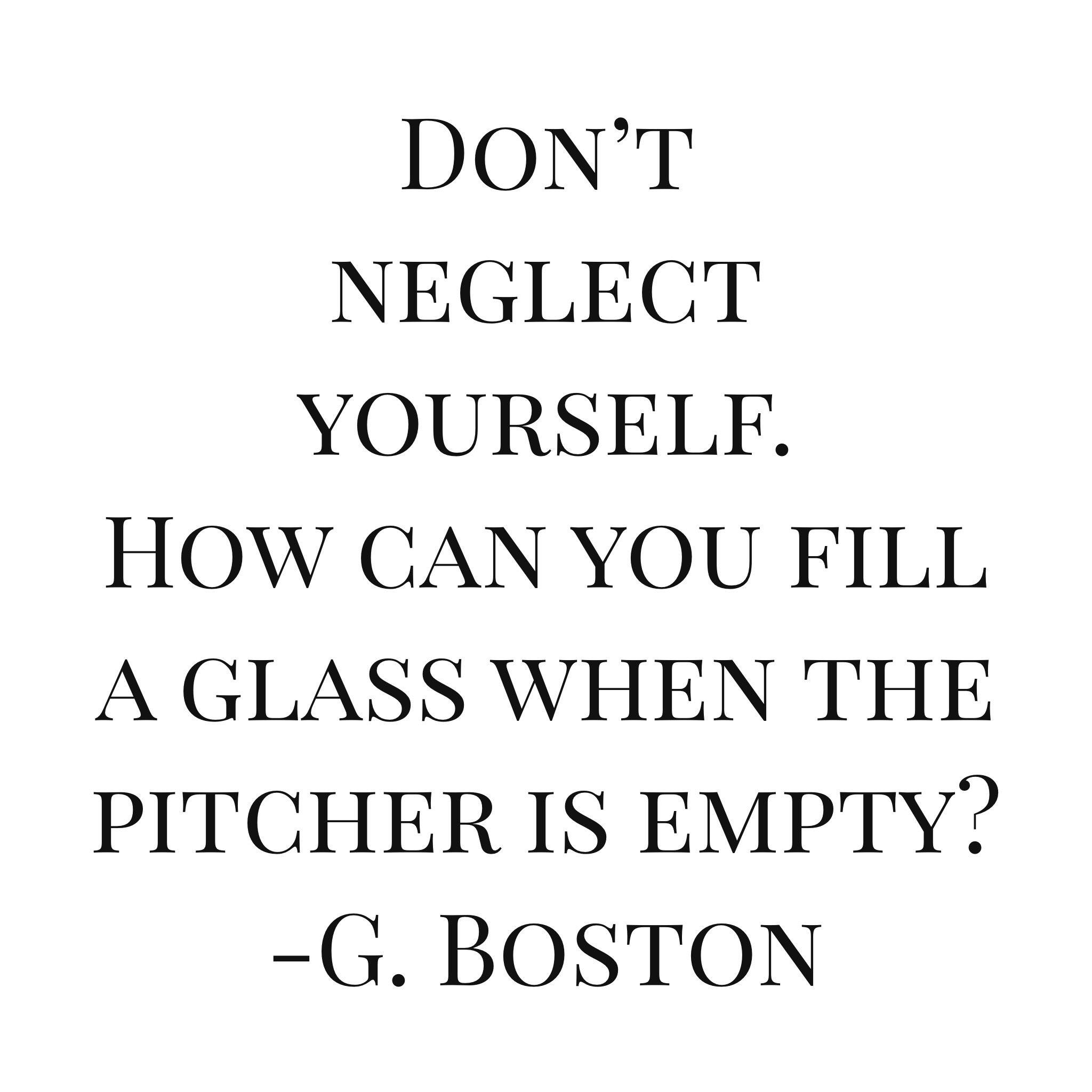 How easy is it to neglect our own needs? So easy…too easy, really. Let’s make sure that we’re taking care of ourselves, so that we can take care of business with full minds and hearts.