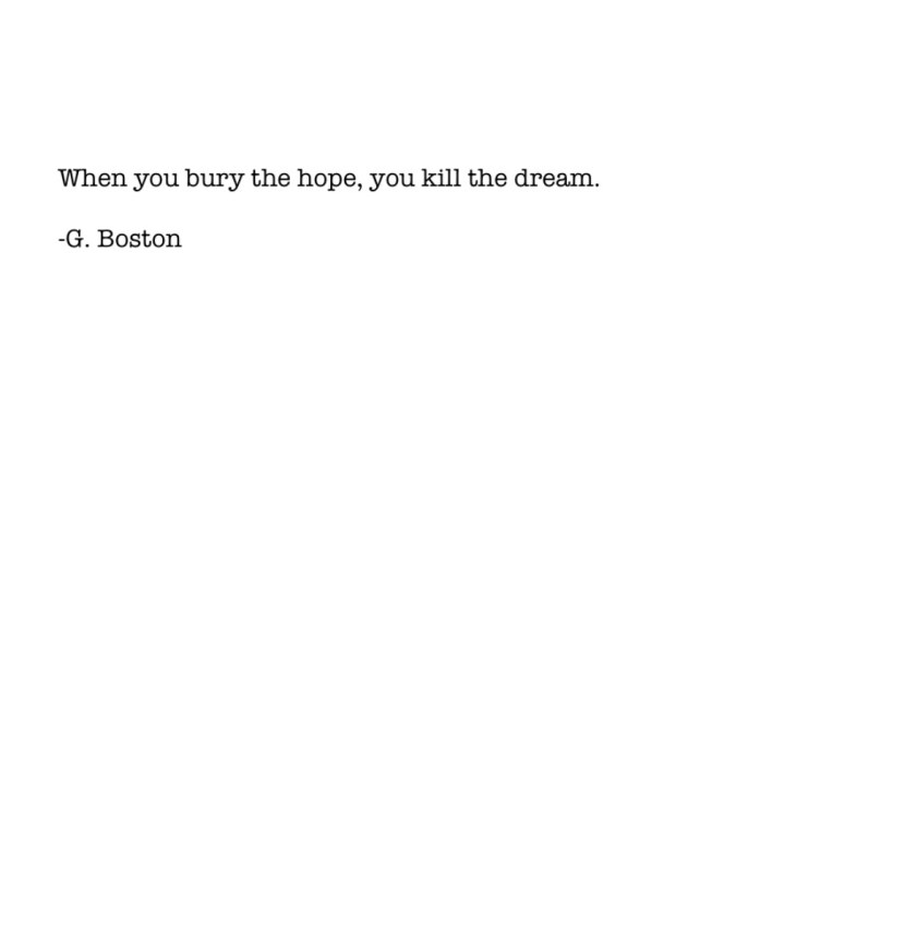 But there’s hope. I beat a dead horse with this topic, because it’s critical that we realize it within ourselves and grow it within others. The moment that you lose hope is the moment that you kill those dreams. Don’t lose hope, and don’t let others trample what you’ve created.