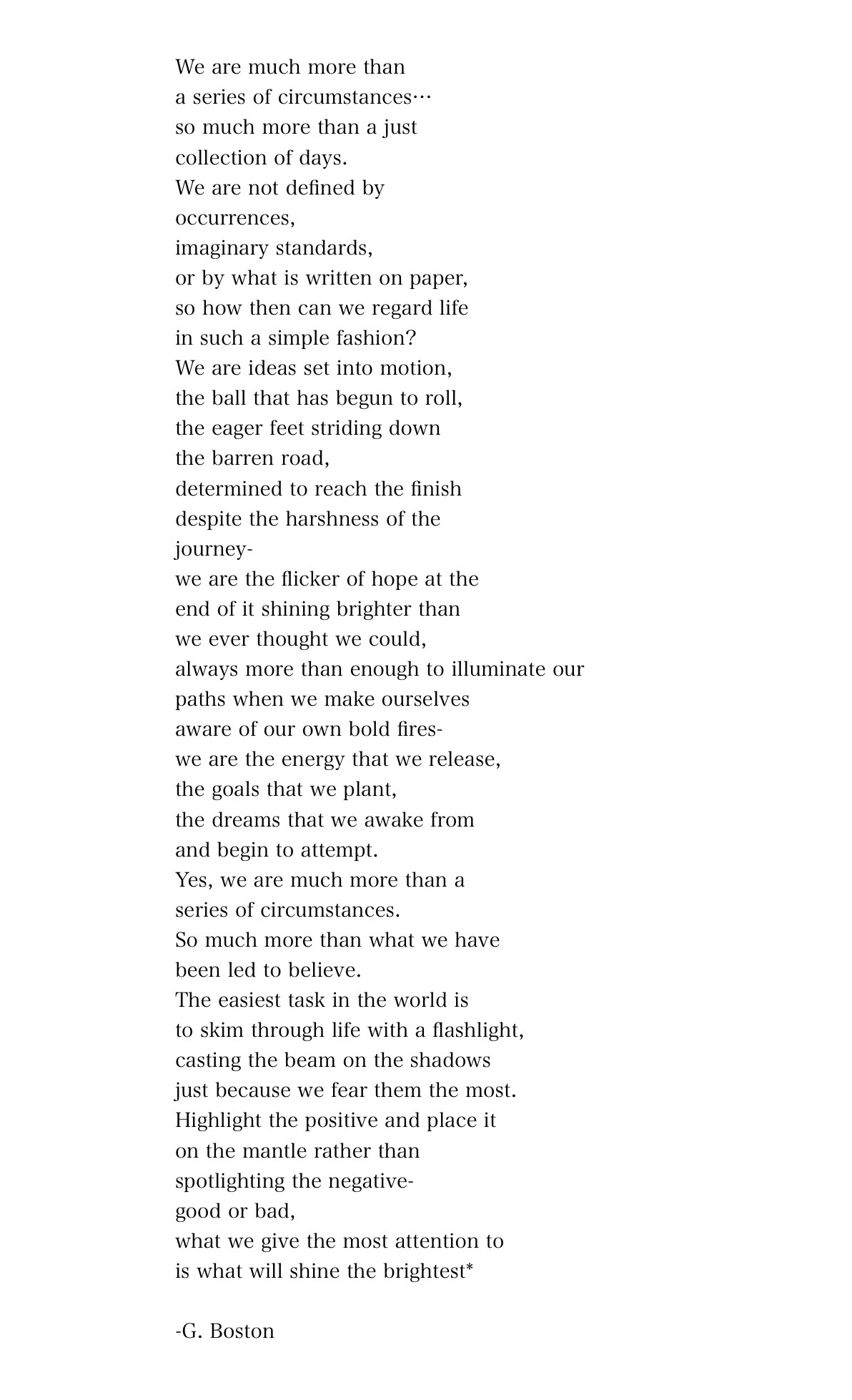 Positivity and negativity; a battle fought by us all. Each has the power to shed its light on our paths and dominate our days. Which will light yours? Best of days to all, and thanks for reading.