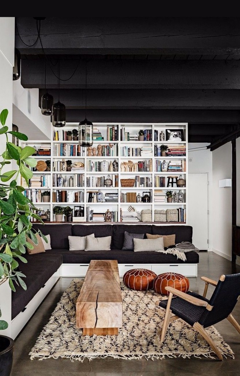 Sometimes you just crave comfort; the ability to sit back, kick the feet up, and just chill. This week’s space is that kind of place. It’s got that quiet, subdued, organic, laid back vibe that would mesh well with sunny afternoons, dreary rainy days, and every day in between. It’s got just enough rough hewn elements to give it some edge, and just enough comfort tones to make you want to dive right in. The tidy little book collection doesn’t hurt either. Let the daydreams commence.
