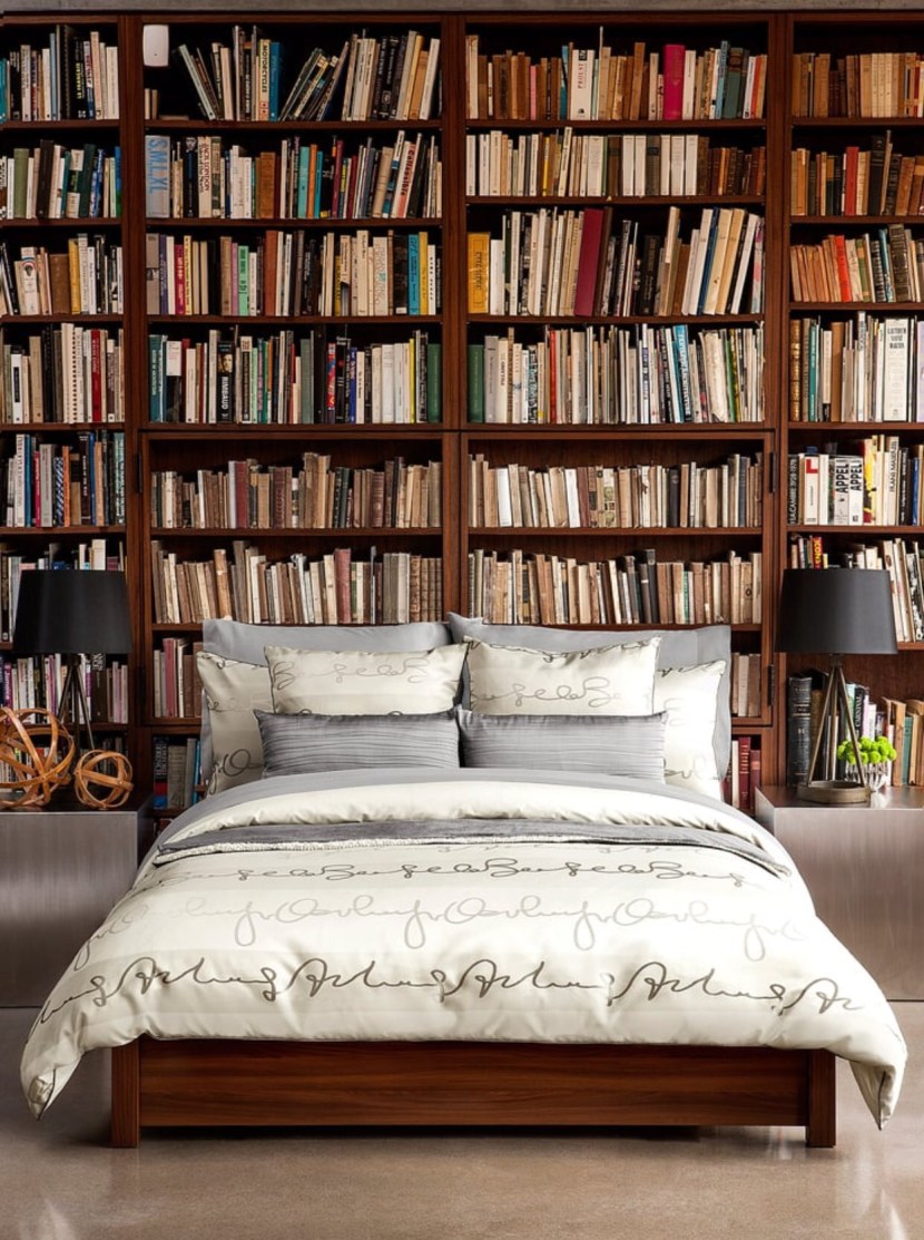 Have you ever wondered what it would be like to sleep in a library? Apparently, so did the owners of this week’s space. And what a lovely dream that they’ve manifested; from this photo alone, it’s pretty obvious that they love books. To such a degree that they’ve lined their bedroom with them…now that’s love. If only all of that information would cascade down over the shelves each night, like a storm of words, and fill one’s head with all of their wisdom. This, friends, is a book lover’s room.