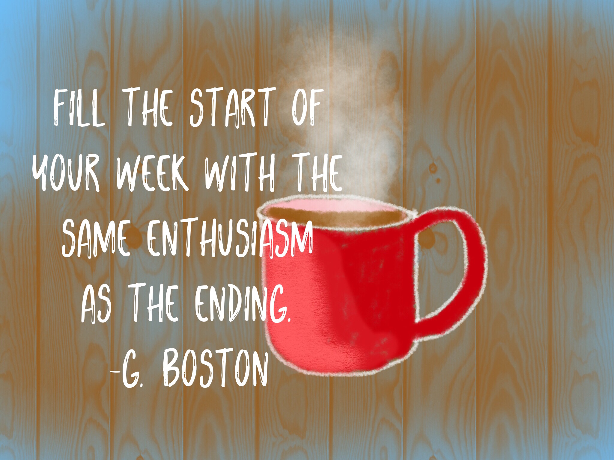 Start the week off positively…and continue that enthusiasm until the week’s end. Every day counts (not just Friday)! Thanks for reading.