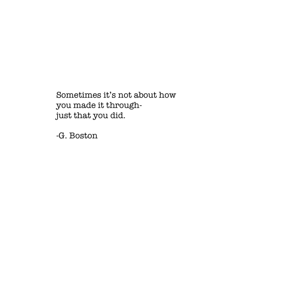What matters is that you did it, you endured, you persevered, despite the odds stacked against you. It’s impossible to get through life without a little mud on your shirt, without a few cuts and scrapes. But if you’re still standing in the end, there’s value in that. Keep charging forward.