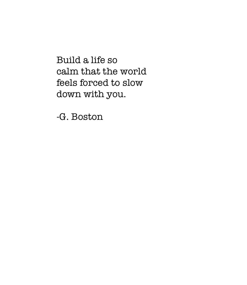 Chill out. Relax. The world is a busy place, and we are so often like ants clambering around trying to catch up and trying to find our place. Why not slow it down a bit? Life shouldn’t have to rush by us. Create a peace so beautiful that the days slow down to catch up with YOU.